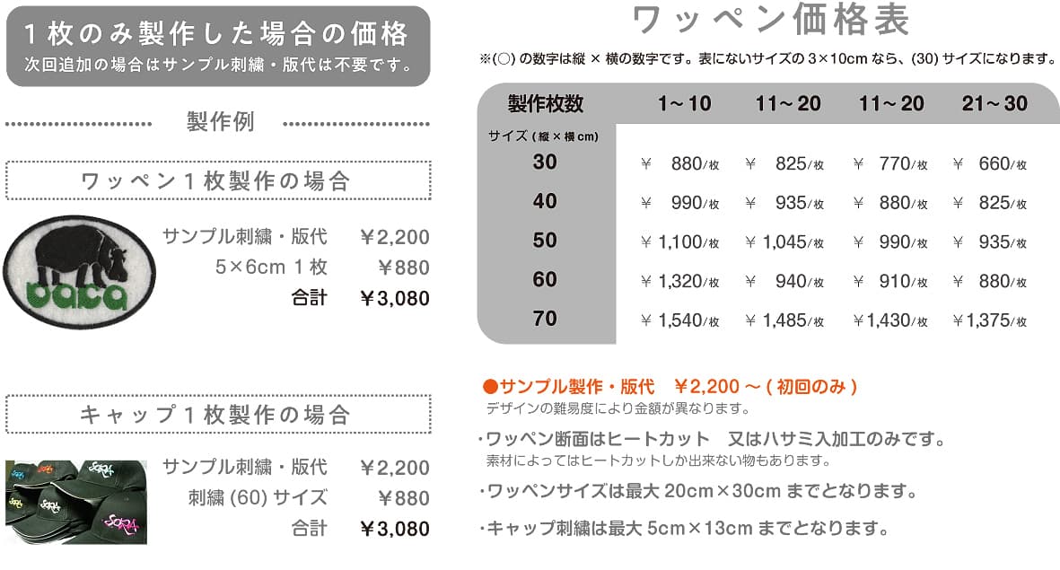 一般的にワッペンを作る場合、ワッペンのベースの生地は、フェルト生地・エンブクロスなどになりますが、微妙な仕上がりやこだわりがある方は生地の持ち込みも可能です。